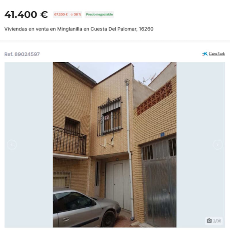 Esta casa adosada de tres plantas se encuentra publicada a la venta en el portal web de Building Center, pertenece a CaixaBank, y se encuentra ubicada en la localidad de Minglanilla, en la provincia española de Cuenca.