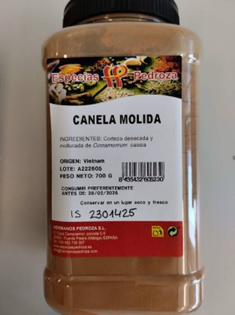 El primero de los productos que re obligó a retirar de las tiendas es un frasco de canela molida de la marca Especias Pedroza por detectar la presencia de Clostridium perfringens entre sus componentes.