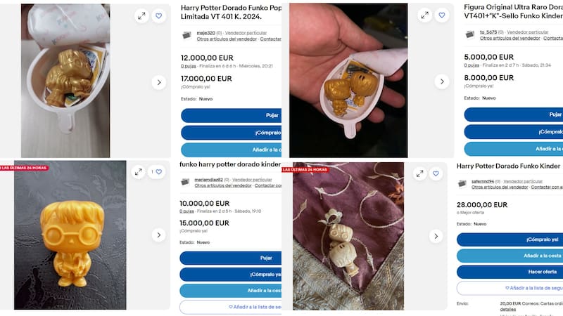 De entre las 25 sorpresas que se encuentran en los Kinder, la figurita difícil y la más codiciada es la dorada de Harry Potter con la snitch en sus manos. Esto no ha pasado desapercibido y desde que finalizó a mediados del pasado la venta este muñequito dorado de plástico, ha incrementado su valor en eBay por miles de euros.