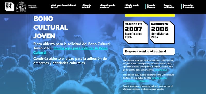 Este programa, impulsado por el Ministerio de Cultura y que en 2025 celebra su cuarta edición, ofrece una ayuda económica destinada a fomentar el acceso de los jóvenes a la cultura mediante la asistencia a actividades y eventos culturales.
