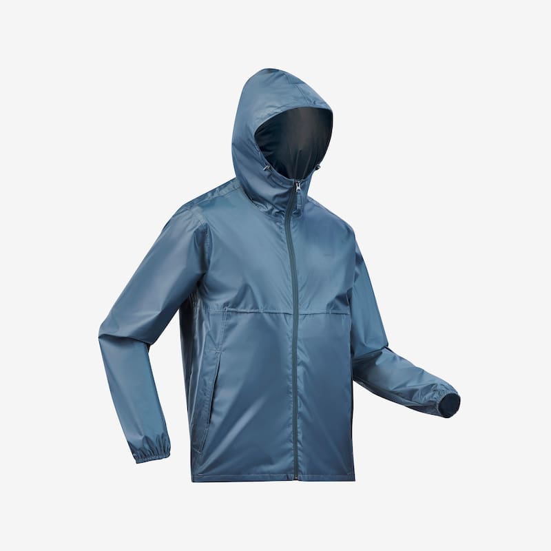 Un escalón por encima aparece la Quechua NH500 con capucha, concebida para senderismo suave y uso urbano cuando el agua aprieta. La ficha de producto destaca ajustes de cintura y puños, cremallera de doble sentido y varios bolsillos con cremallera para llevar móvil y documentación a salvo.