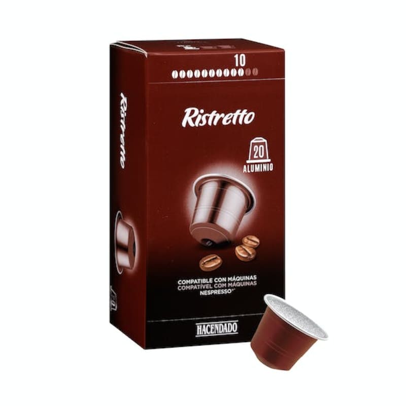 Se trata de las cápsulas de café Ristretto de la marca blanca Hacendado. Compatibles con la máquina Nespresso vienen en su presentación de 20 unidades de 106 gramos cada una. Se venden en los locales de la empresa o están disponibles en la tienda online con un clic aquí.