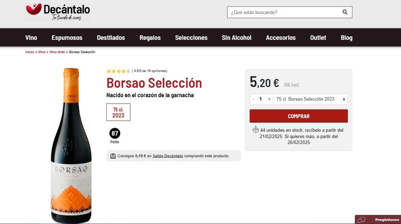 El Borsao Tinto Selección 2023 se ofrece a un atractivo precio de 5,20 euros, lo que lo convierte en una excelente opción para quienes buscan un vino de calidad sin comprometer su presupuesto. Puedes conseguirlo a través de la tienda online Bodegas Salas (https://bodegassalas.com/borsao-seleccion-tinto/).