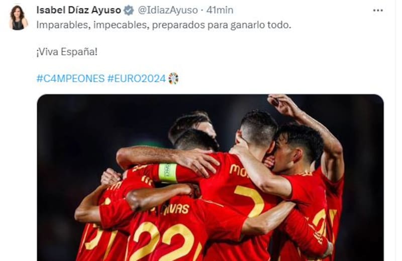 España se ha consagrado campeona de la Eurocopa 2024 este domingo y junto con los aficionados, los integrantes del arco político local no demoraron en celebrarlo.