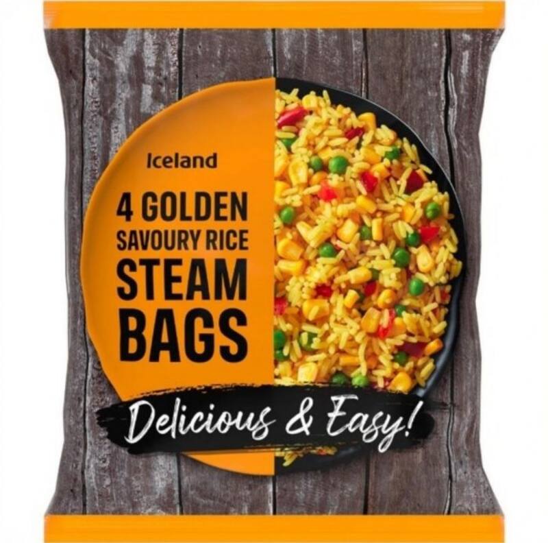 El artículo en cuestión es "4 Golden Savoury Rice Steam Bags", de la marca Iceland, cuyo plazo de consumo preferente está fijado para el 16 de noviembre de 2025. Este producto se comercializa congelado en envases de 600 gramos.