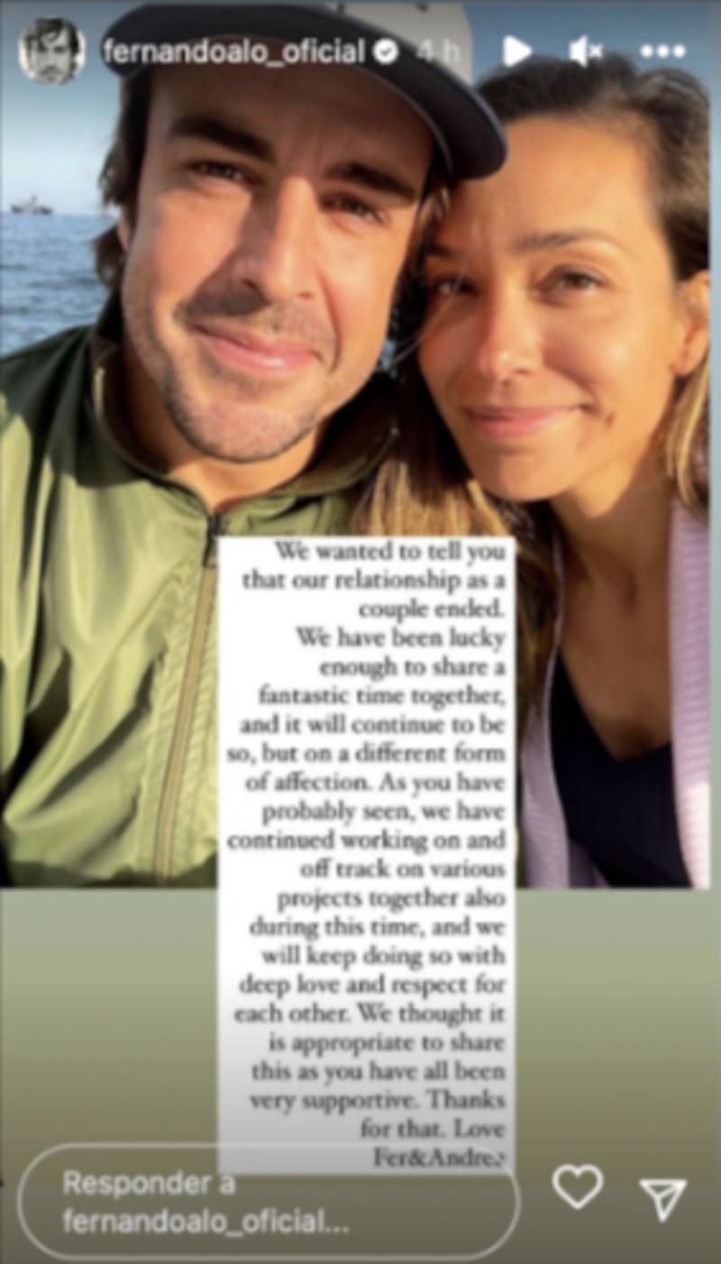 El piloto de automovilismoFernando Alonso ha sido centro de atención luego de anunciar en sus redes sociales su ruptura amorosa con Andrea Schlager, con la que tenía al menos un año de relación ya que fue en abril de 2022 cuando confirmaron su noviazgo.