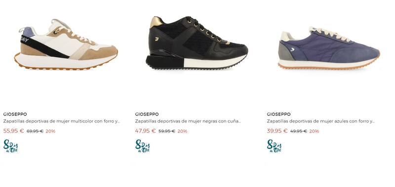 Entre todos esos artículos deportivos que vende hay ofertas destacadas, como lo son aquellos que aparecen en la categoría zapatos de mujer, donde hay algunos modelos de la marca Gioseppo con importantes rebajas.