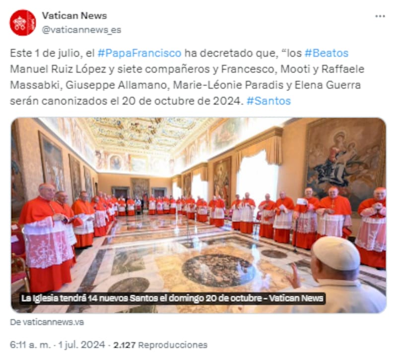 Según informó Vatican News, la Iglesia Católica tendrá 14 nuevos Santos. La decisión fue sometida a un Consistorio Público donde se definieron algunas causas para la canonización y se decidieron las fechas para la mayoría de las ceremonias.