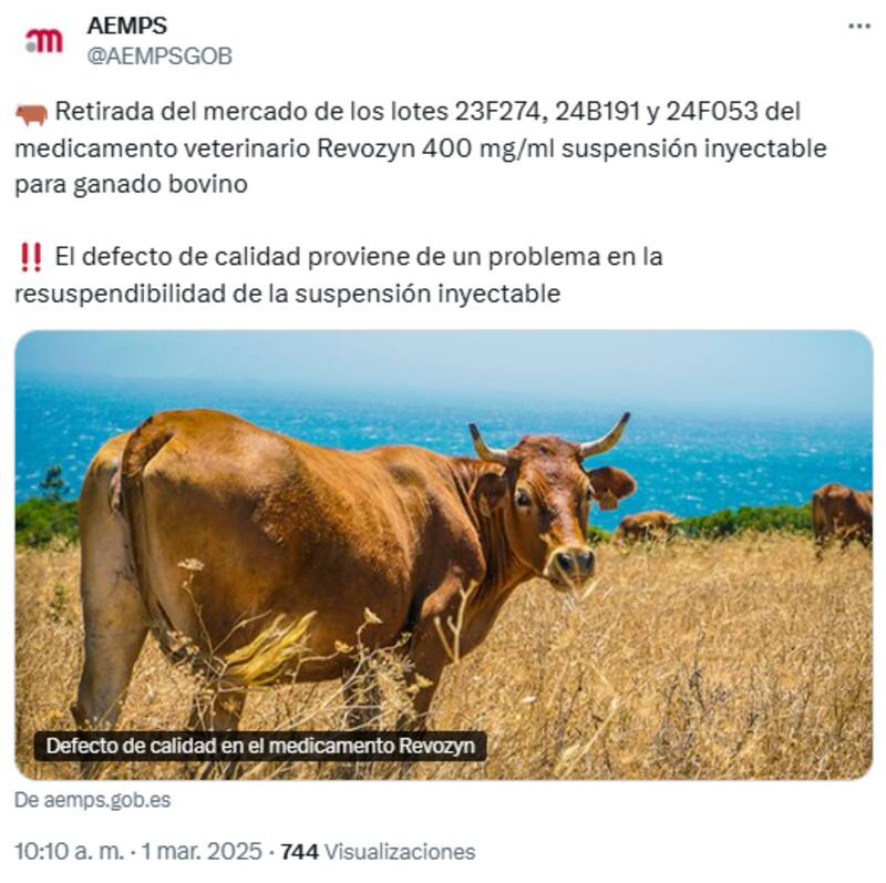 Las acciones implementadas por la AEMPS incluyeron la retirada del mercado mayorista de todos los lotes afectados del medicamento veterinario, cuyo titular de la autorización de comercialización es Eurovet Animal Health B.V. Esta medida busca salvaguardar la salud pública y la integridad del sector ganadero.