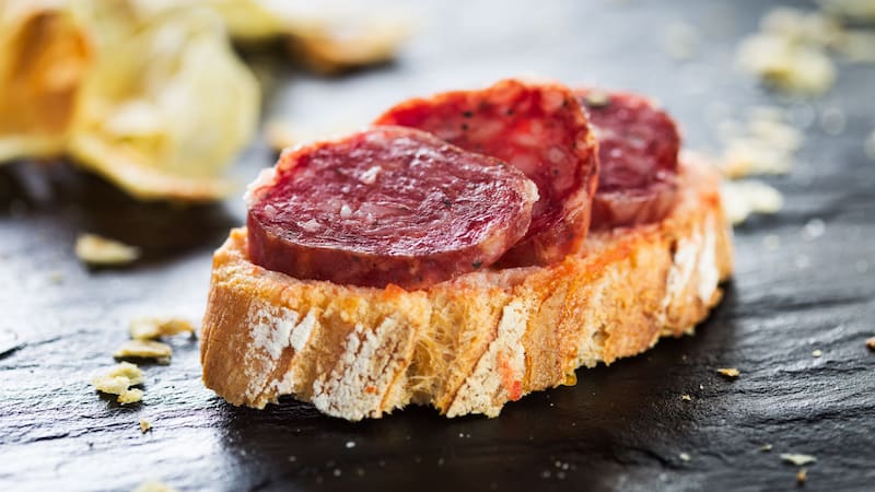 - Chorizo de Cantimpalos: este chorizo proviene de la localidad de Cantimpalos, en Segovia. Es un embutido de sabor suave que se elabora con carne magra de cerdo, panceta, pimentón dulce, ajo, orégano y sal.
