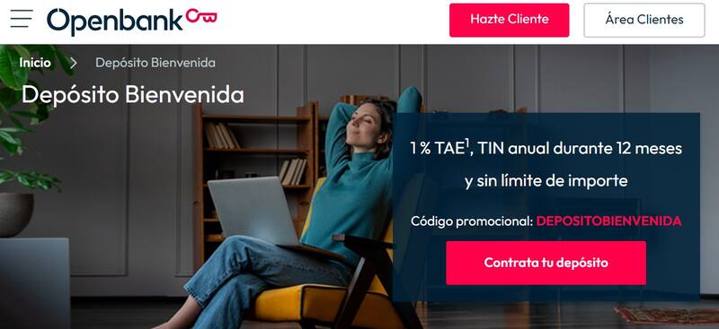 La banca digital del Grupo Santander, Openbank, ha lanzado su "Depósito Bienvenida" para nuevos clientes. Se trata de un depósito a plazo fijo con el que tus ahorros generan intereses que recibes al terminar el plazo de 12 meses.