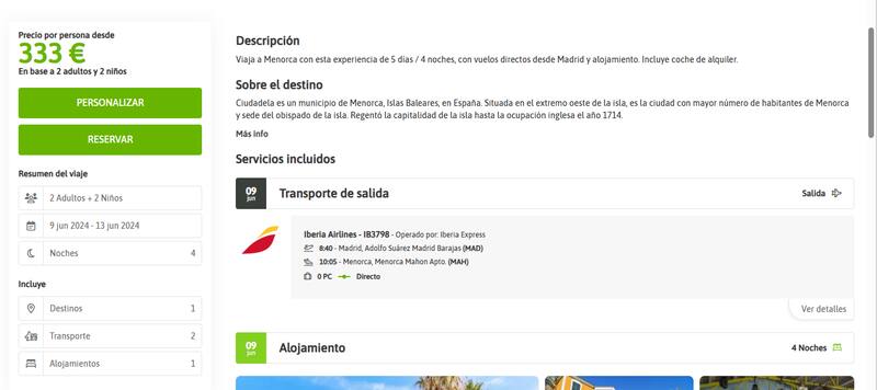 Esta oferta de El Corte Inglés es una excelente oportunidad para disfrutar de las bellas playas y el encantador entorno natural de Menorca con toda la familia. No dejes pasar esta increíble oferta y asegura tus vacaciones perfectas a un precio inigualable.