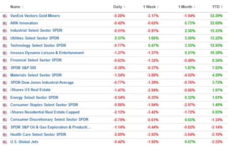 El sector que más sube este año es el de mineras de oro, con una suba del 53%, seguida por el de tecnología a largo plazo (ARKK) y el industria, que ganan 32,7% y 15,3% respectivamente.
