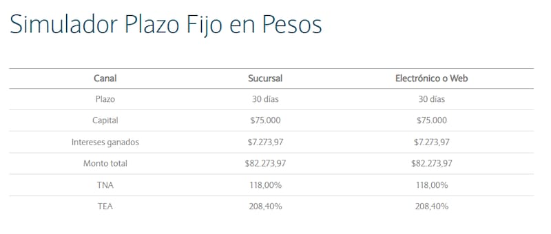 Si se elige la opción del plazo fijo a 30 días y se depositan $ 75.000, al final de los 30 días obtendrás una ganancia total de $ 7.273,97.