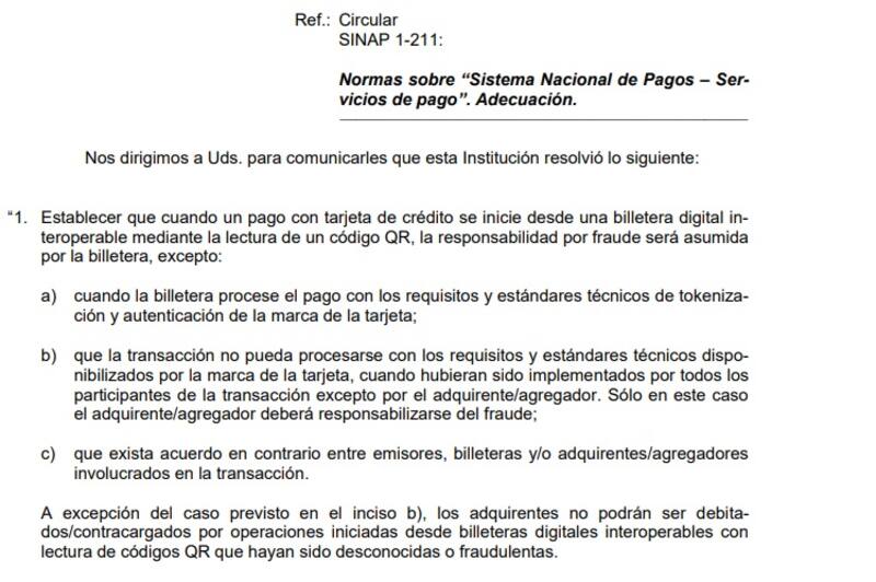 Los bancos remarcaron que el fraude lo paga cada billetera y no el proveedor del QR, por lo que calificaron la decisión de Mercado Pago como una "excusa". De hecho, la Comunicación A8032 del Banco Central estipula que la responsabilidad será asumida por la billetera que inicia el pago, salvo en tres excepciones: