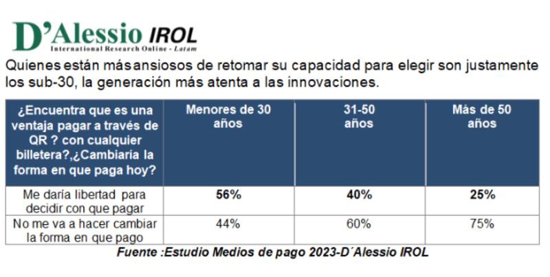 Entre los de 31 y 50 años, el 40% se declara más "libertario", mientras que 60% del segmento asegura que la apertura del sistema no modificaría su forma de pagar con una App.