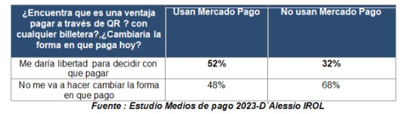 Señala el estudio que, si bien el 87% de sus usuarios está muy conforme con Mercado Pago, la posibilidad de pagar con cualquier billetera utilizando QR les generaría "sensación de libertad".