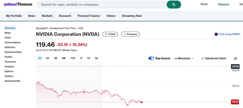Las fuertes bajas en el sector tecnológico se dan luego de que el nuevo modelo de la startup chino de inteligencia artificial, DeepSeek, genera dudas entre los inversores sobre el negocio de inteligencia Artificial y plantea dudas sobre el dominio de las empresas tecnológicas estadounidenses, como Nvidia.