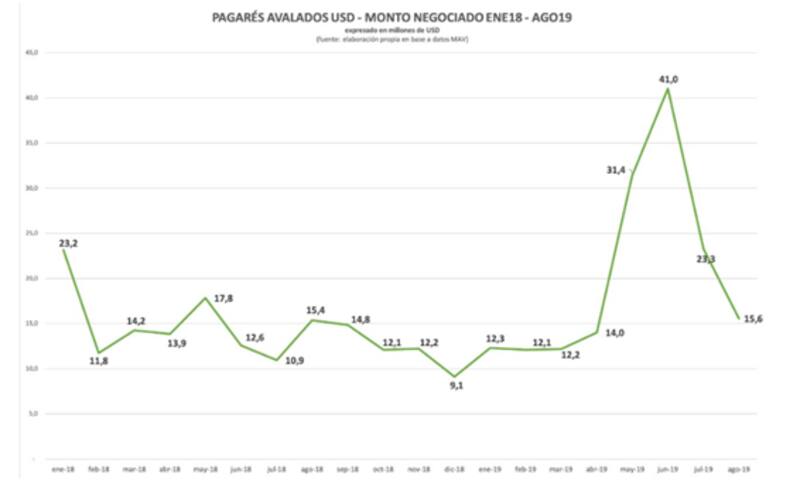 “Los pagarés también tuvieron su turbulencia. Durante agosto se negociaron u$s 15,6 millones, suma que representa una caída del 33% respecto del pasado mes de julio de 2019. El impacto de dicho segmento se registró no solo en el escaso volumen diario post PASO, sino también en las tasas, las cuales superaron el 20% , dijo Villarroel.