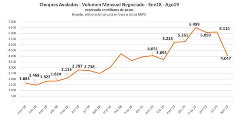 “Cabe destacar que los cheques sin negociar durante agosto, los “desiertos , es decir aquellos que las Pymes no pudieron descontar para financiarse, fueron por más $8.600 millones. No obstante, el volumen acumulado durante los primeros 8 meses de 2019 asciende a más de $40.900 millones, registrando un crecimiento del 142% respecto de igual periodo de 2018. Claramente el mercado de capitales ha sido un aliado para las Pymes, en este escenario de contracción del crédito , explicó Villarroel.