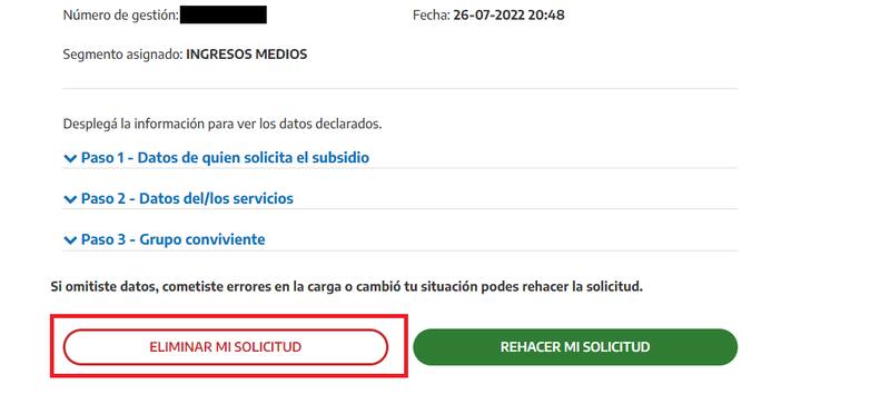 Para completar la anulación definitiva, hacer clic en "Eliminar mi solicitud".