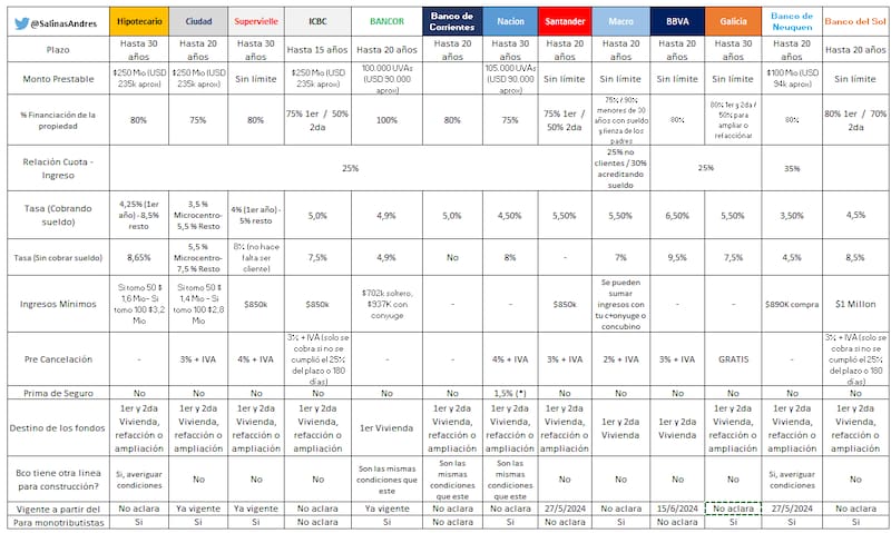 Las entidades que durante el último mes confirmaron el lanzamiento de estas líneas de crédito fueron los bancos Nación, Ciudad, Hipotecario, Bancor, Banco de Corrientes, Banco de Neuquén, Macro, Galicia, BBVA, ICBC, Supervielle, Santander y Banco del Sol.
