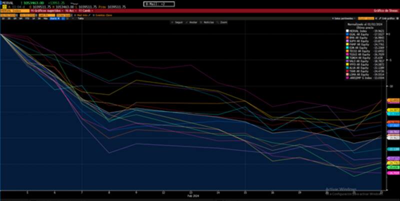 Otros casos como Grupo Financiero Galicia, Banco Macro, YPF, Telecom, Grupo Financiero Valores o Edenor, muestran mermas menores, de entre 12,5% y 18% en lo que va del mes de febrero.