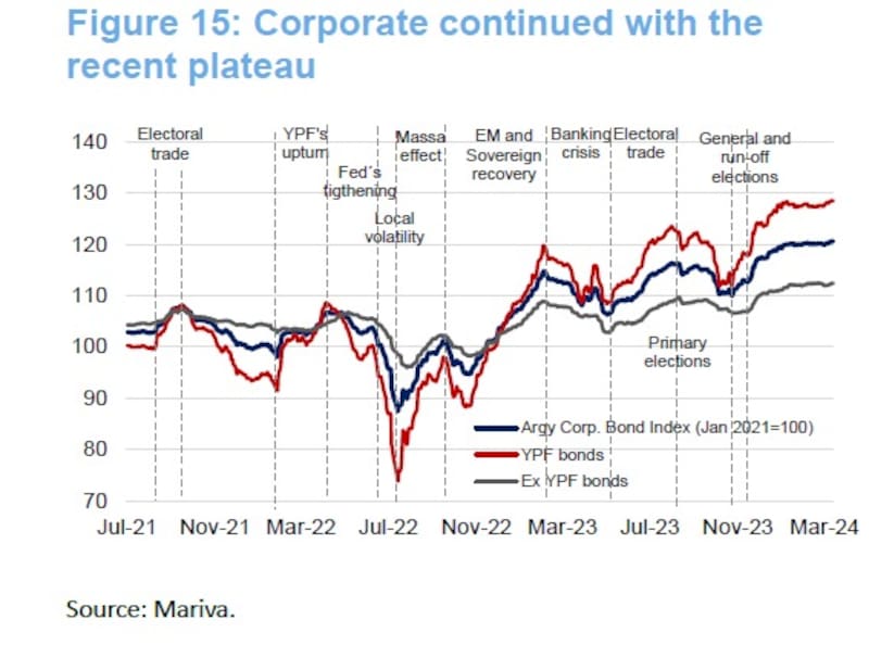 Desde el inicio del proceso electoral, el índice de bonos corporativos elaborado por Research Mariva, muestra un avance del 9%.