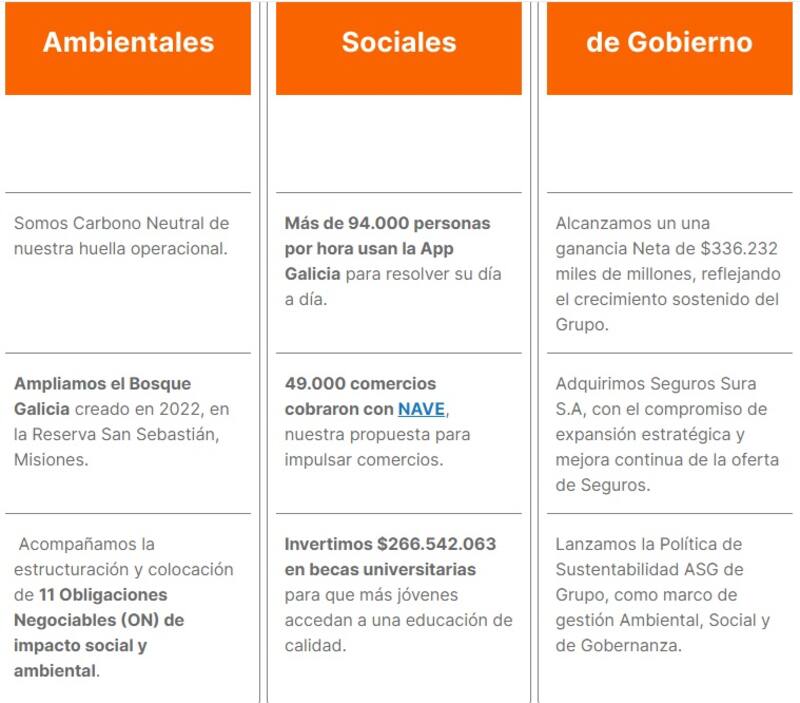 "Lanzamos nuestra Política de Sustentabilidad ASG para establecer el marco de gestión y los Principios Generales que seguirá el Grupo y sus subsidiarias en materia Social, Ambiental y de Gobernanza. La política alcanza a todas las compañías del Grupo y se alinea a los desafíos de la agenda global utilizando como guía las principales iniciativas, lineamientos, certificaciones y estándares internacionales y nacionales", señaló, por su parte, Fabián Kon, Gerente General de Grupo Galicia.