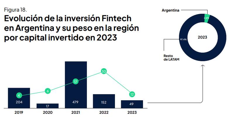 Si bien la Argentina es 10% del mercado fintech, representa en el informe solo el 2% de la inversión, atribuida por Finnovista a la posibilidad de que la capitalización de las firmas se haya producido fuera de las fronteras del país.