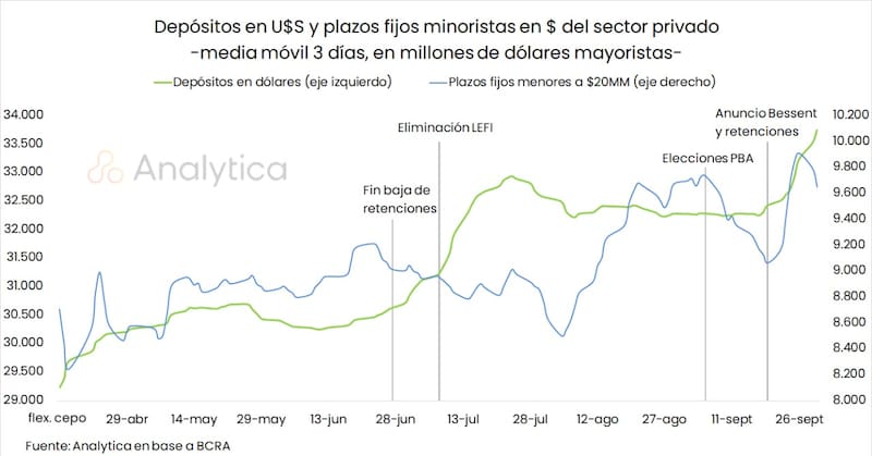 Esa tendencia continuaría en octubre, impulsada por la inminencia de las legislativas, aunque podría no tener un impacto tan alto en los depósitos, ante probables retiros de las cajas de ahorro.