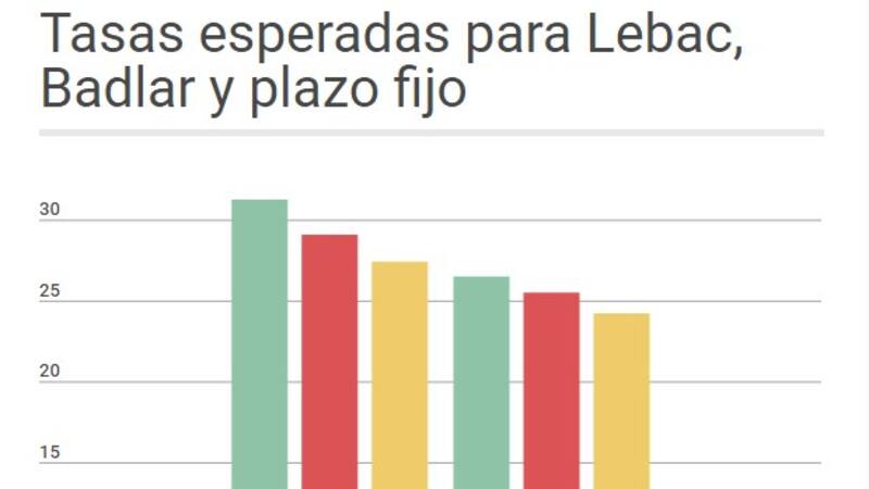 Para las Badlar, según la misma encuesta realizada por este medio, para fines del corriente la tasa estaría 29,12% promedio, mientras que para el 31 de diciembre estiman estará en 25,54% promedio.