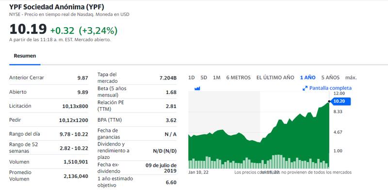 Las acciones de YPF cotizan en la Bolsa de Buenos Aires (BCBA) y en la Bolsa de Nueva York (NYSE).