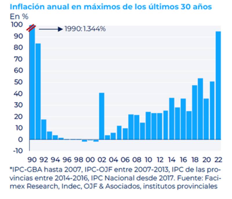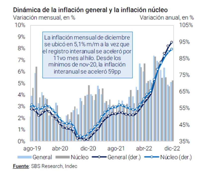 De esta manera, la inflación minorista cerró 2022 en 94,8% interanual, que es el mayor registro desde 1990 y casi duplicando al 2021 del 50,9 por ciento.