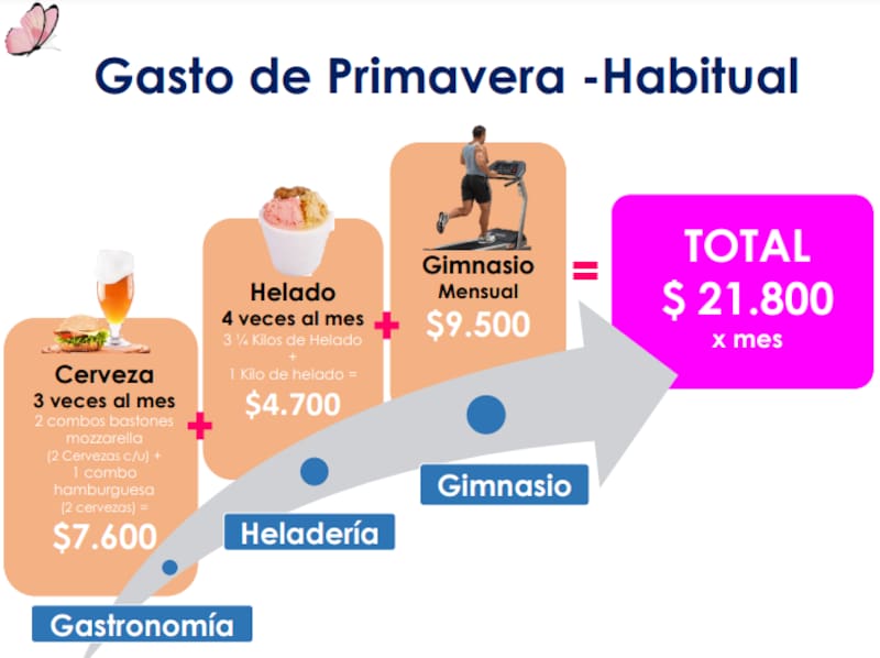 La estimación de los gastos fue hecha en dos partes. Por un lado, la recopilación de los rubros que implican un consumo habitual (gastronomía, heladerías y gimnasios); y las de consumo ocasional (turismo y artículos deportivos).