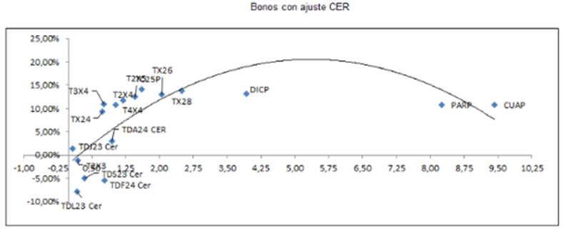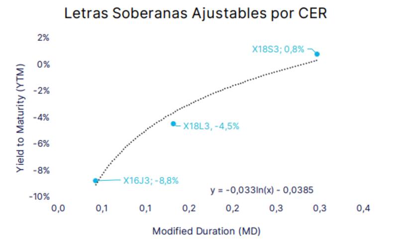 Lo mismo ocurre con las letras que ajustan por CER, las cuales también operan con tasas muy negativas.
