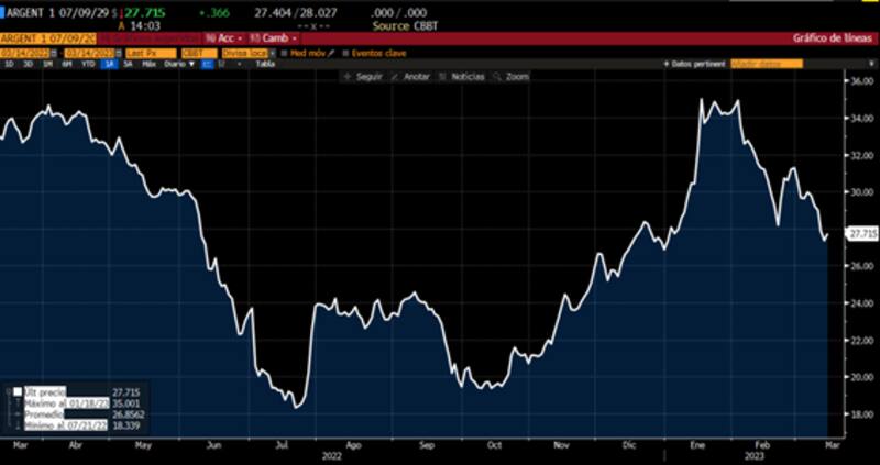 "En un contexto externo adverso, en el que los títulos emergentes inicialmente sintieron el efecto de una política monetaria más restrictiva en Estados Unidos y que ahora se están viendo impactados por la incertidumbre que ha generado la crisis de liquidez de ciertos bancos norteamericanos.", dijo.