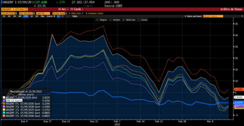 Lo que se observa entonces es que la deuda argentina operó con un nivel de volatilidad más alto que sus pares, perdiendo la totalidad de lo que había ganado hasta enero.