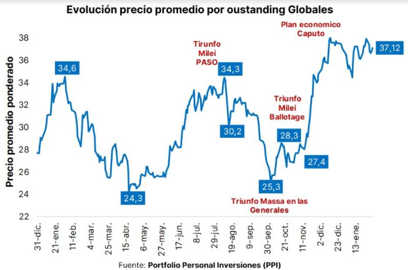 Desde comienzo de octubre, todos los tramos de la curva argentina avanzaron entre 35% y 55% favorecidos por un contexto de tasas globales a la baja y por el cambio político, con Javier Milei como ganador de las elecciones presidenciales.