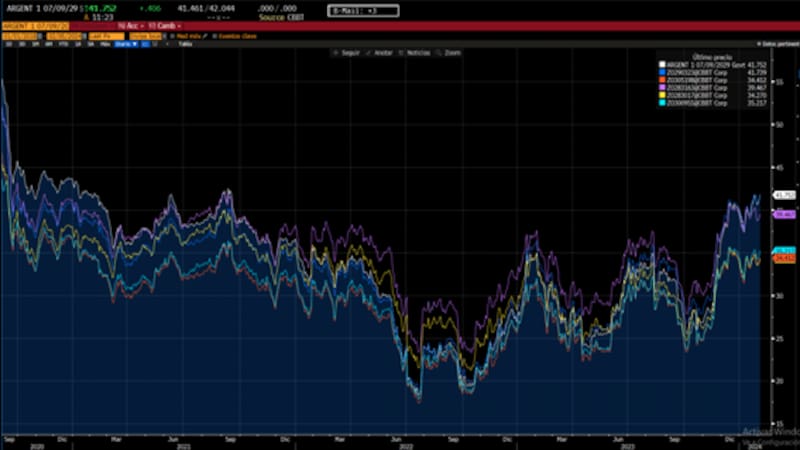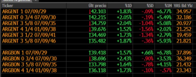 Esto hizo que los bonos argentinos se sitúen en máximos desde 2021. Aun así, todavía se encuentran entre un 19% y 26% debajo de sus máximos históricos.