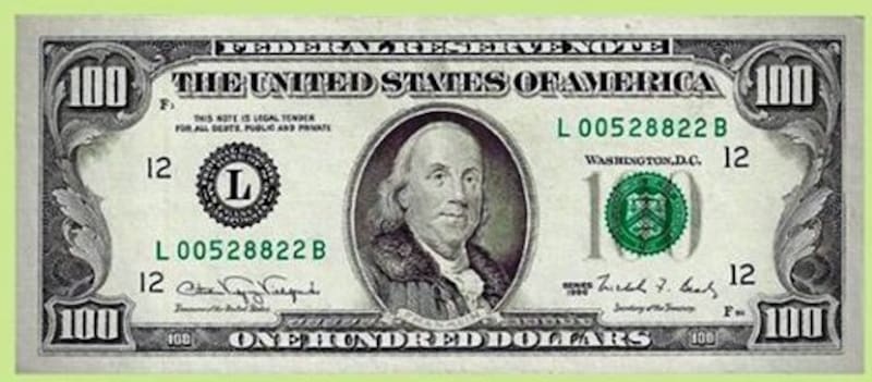 Son los billetes de u$s 100 emitidos entre 1914 y 1996. Se los reconoce como "cara chica", dado que en el mismo aparece la figura de Benjamin Franklin dentro de un marco ovalado muy pequeño.