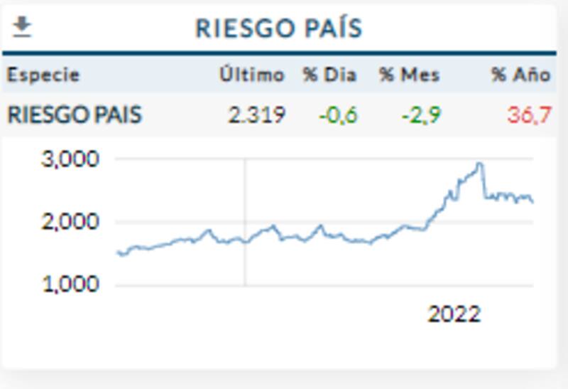 El riesgo país se ubica en 2323 puntos y cae más de 630 puntos desde sus picos alcanzados en junio, es decir, poco más de 21% de baja.