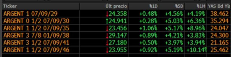 A su vez, en el balance de la última semana, los Globales suben 4,5% en promedio en los distintos tramos de la curva soberana argentina.
