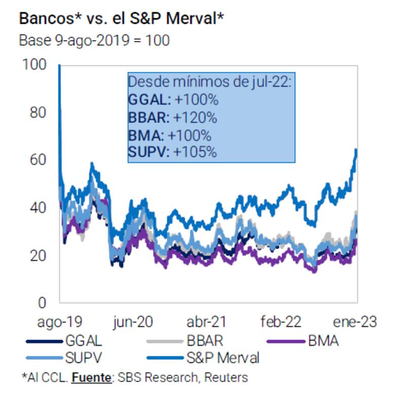 Es decir, en medio de la fuerte recuperación de las acciones argentinas en general, el sector bancario ha quedado retrasado.