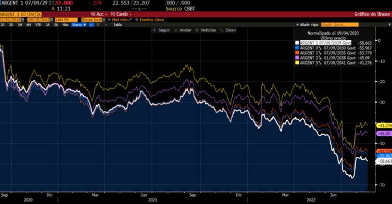 Justamente, el hecho de que el BCRA no logre acumular reservas, pone en una postura de mayor pesimismo a los inversores y pone presión sobre la deuda.