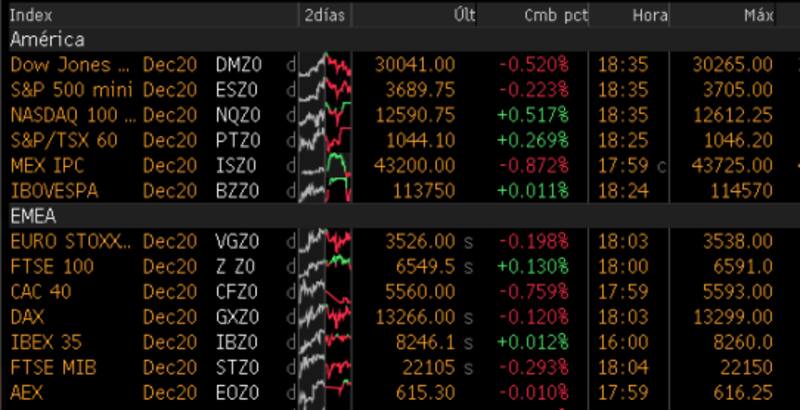 Los principales índices de Wall Streetoperaron mixtos el lunes a medida que los casos de coronavirus en EEUU continúan aunentando a la vez que la expectativa de que el Congreso estadounidense logre un acuerdo para aprobar el paquete de estimulo para sostener a la economía mantiene en vilo a los inversores. En ese marco, los bonos argentinos muestran caídas mientras que las acciones locales en EE.UU. operan mixtas.