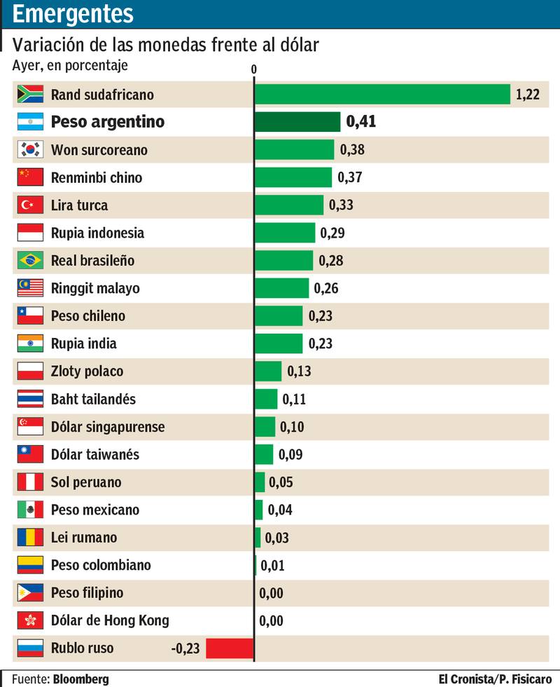 A excepción del rublo ruso, todas las monedas emergentes subieron ayer frente al dólar estadounidense, con avances que superaban el 1% como en el caso del rand sudafricano.