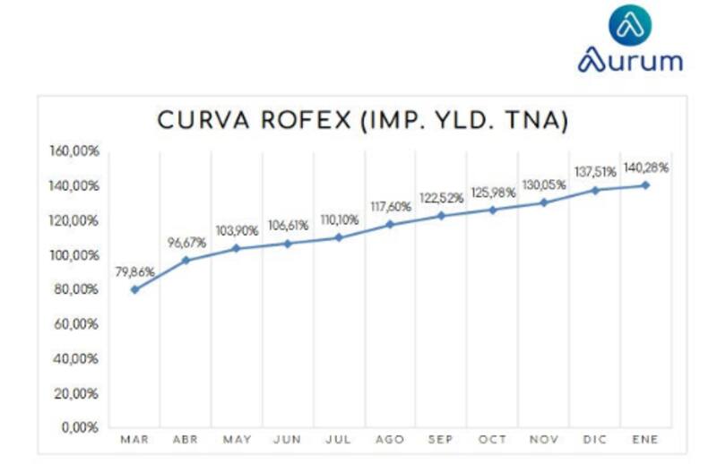 Hoy la curva Rofex opera con tasas de 96% de TNA para abril, saltando al 104% a mayo, 118% en agosto.