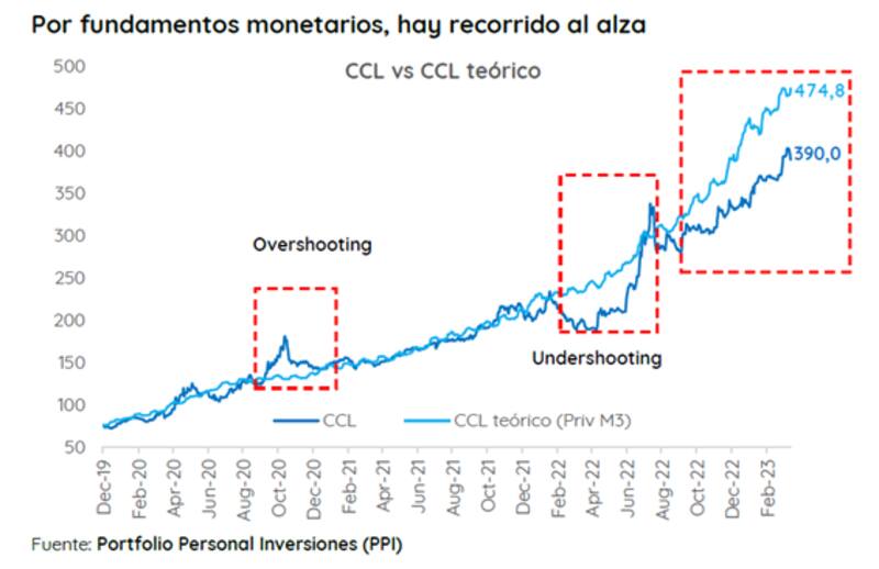 Los analistas de Portfolio Personal Inversiones (PPI) advierten que al analizar la oferta como el stock total de pesos o el agregado monetario M3 en manos del sector privado, consideramos que sigue habiendo recorrido al alza del CCL.