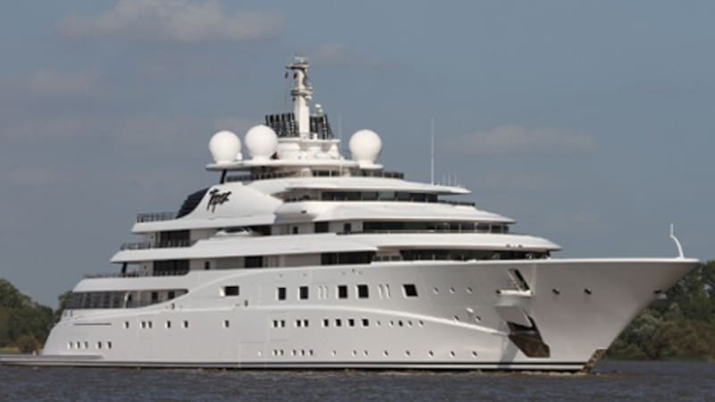 En su interior, el yate posee un gimnasio, piscina y jacuzzi. Además, cuenta hasta con un helipuerto y un cine propio.
